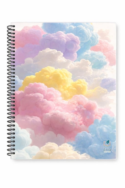 A5 96 Yaprak Sert Kapak Spiralli Çizgili Defter Bulut Modelli 8684646790155