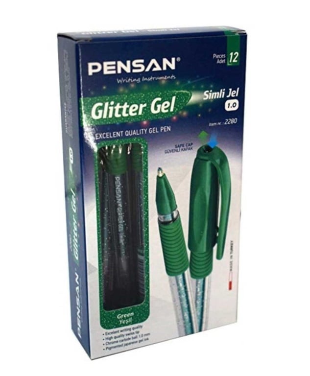 Pensan Yeşil Tükenmez Kalem Glıtter Simli Jel 1.0 Mm 12'li Paket 8692404228160