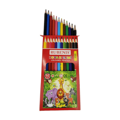 Rubenis 12 Renk Tam Boy Kuru Boya, parlak renkleri ve kaliteli yapısıyla okul ve günlük boyama çalışmaları için ideal bir seçimdir.