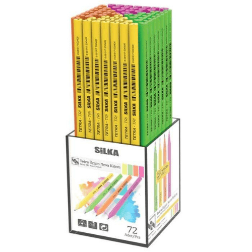 Silka Tetra üçgen neon kalem seti, canlı renkleri ve ergonomik üçgen gövdesiyle dikkat çeker. Yazı yazma ve çizim için idealdir. 72 adetlik paket içeriği ile okul ve ofis kullanımı için ekonomik bir çözümdür.