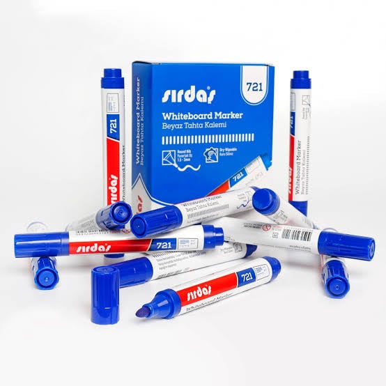 Sırdaş mavi beyaz tahta kalemi, net yazım ve kolay silinme özelliğiyle eğitim ve sunumlarda pratik kullanım sağlar.