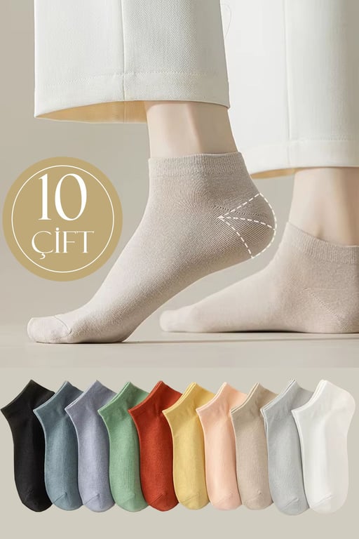 - Rahatlık ve şıklığı bir arada sunan pamuklu kadın renkli çoraplar, günlük kullanım için idealdir.; - 10 çift set halinde gelen bu patik çoraplar, evde rahatça giyilebilir ve konfor sağlar.; - Her yaş grubuna uygun tasarımıyla yetişkinlerin tercihi olan bu çoraplar, ev ortamında rahatlıkla kullanılabilir.; - Düz deseniyle sade ve zamansız bir görünüm sunar; her türlü kıyafetle kolayca kombinlenebilir.; - Yüksek kaliteli pamuklu materyali sayesinde ayaklarınız gün boyu nefes alır ve yumuşak bir dokunuşa sahip olur.; - Orta silueti ile ayak bileğini nazikçe sararak konforlu bir deneyim sağlar.; - Homewear olarak tasarlanmış olup, ev içindeki aktivitelerinizde size eşlik ederken stilinizi de korumanızı sağlar.; - Paket içeriğinde yer alan 10 adet çorap ile uzun süreli kullanım imkanına sahipsiniz.
