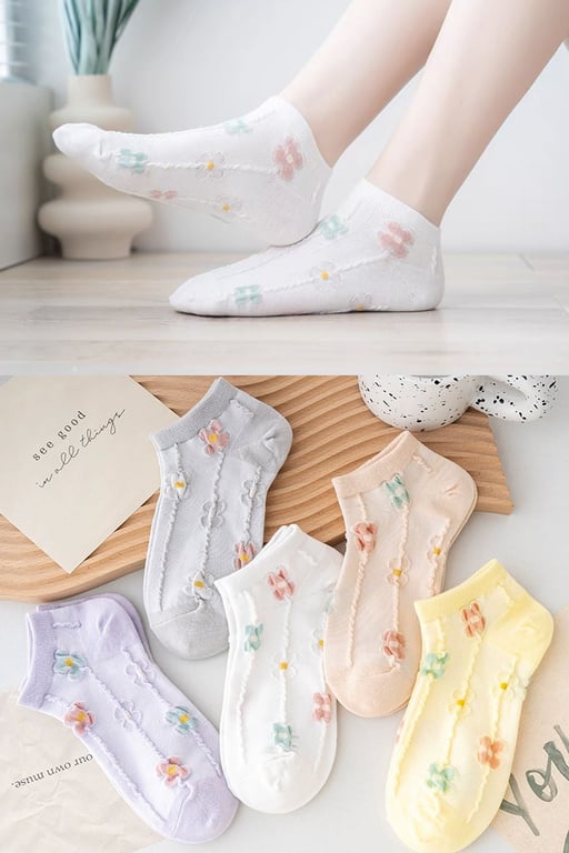BGK 5 Çift Çiçekli Kabartma Desenli Kadın Çorap 36-41