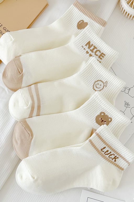 BGK 5 Çift Ekru Nice Desenli Kısa Çorap 36-41