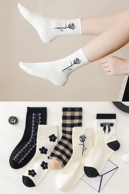 BGK 5 Çift Gül Desenli Kadın Çorap 36-41 863844155889652