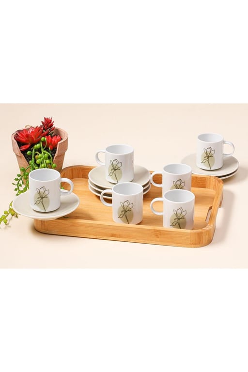 6 kişilik geniş kapasite, aile ve arkadaşlarınızla keyifli kahve sohbetleri için ideal; Yüksek kaliteli porselen malzeme, uzun ömürlü kullanım ve şık bir görünüm sunar; Her fincan, zarif tasarımıyla kahve ritüellerinizi özel kılar;