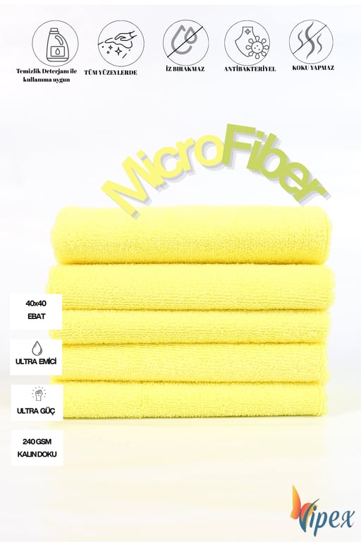 Vipex 40x40 cm Ultra Emiciliğe Sahip 240 Gsm Mikrofiber Bez Sarı Renk V4354365341
