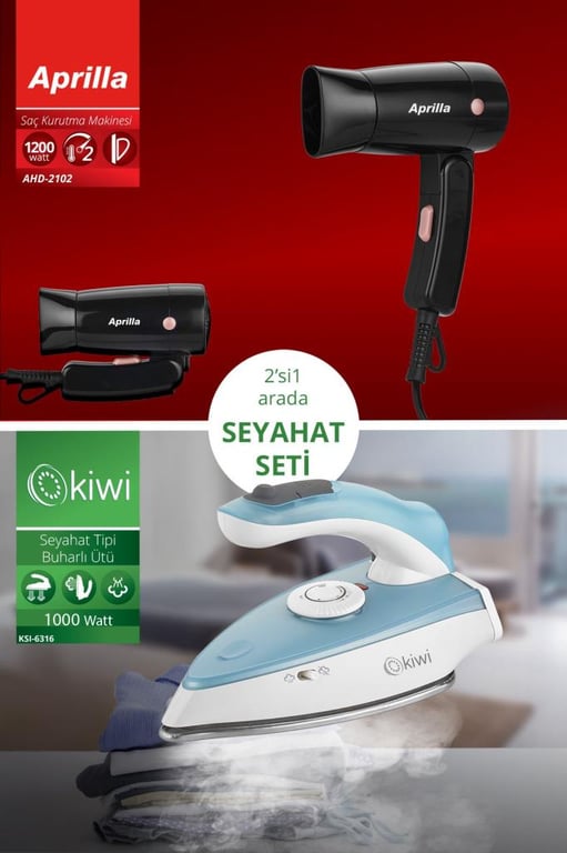 Tatilde, iş gezisinde ya da hafta sonu kaçamağında şıklığınızdan ve konforunuzdan ödün vermeyin! İki güçlü cihaz, tek kutuda: Seyahat Tipi Buharlı Ütüve Saç Kurutma Makinesiile bakımlı görünmek her zaman ve her yerde mümkün.