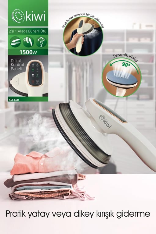 KSI-660 2'si 1 Arada Buharlı Ütü – 1500W Güçlü, LED Ekranlı, 90° Dönebilen Saplı