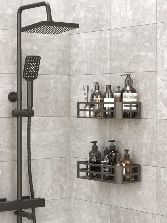 Minihome 2’li Banyo Duş Rafı ve Düzenleyici, Şampuanlık, Sabunluk, Siyah Yapışkanlı Duş Organizer Suya Dayanıklı Plastik