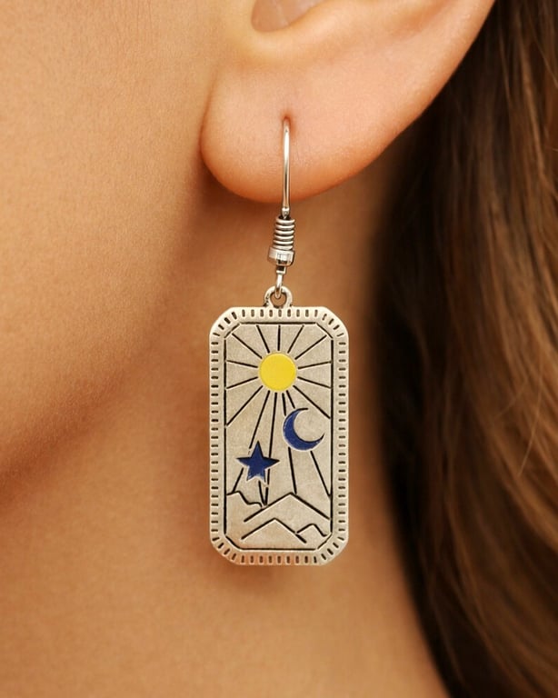 Bu gece-gündüz temalı küpe, sadece bir aksesuar değil — stil ile anlamı birleştiren, çift yönlü ifade sunan özel bir modeldir. Güneş ve ay motifleri günün ritmini, zıtlıklar uyumunu ve bireysel tarzı sembolize eder; bu da takı seçiminde duygusal bir bağ yaratır.