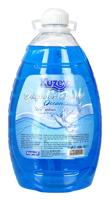 Kuzey Sıvı Sabun Okyanus Esintisi 4 LT, ferah okyanus kokusuyla etkili temizlik sağlar. Cildi kurutmayan formülü ve büyük boy ambalajıyla günlük ve yoğun kullanıma uygundur.