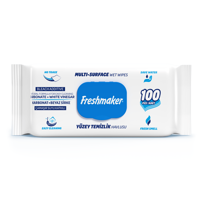 Freshmaker Yüzey Temizleyici Havlu Freshmaker Çok Yüzeyli Islak Mendil Kapaklı Mavi 100'lü