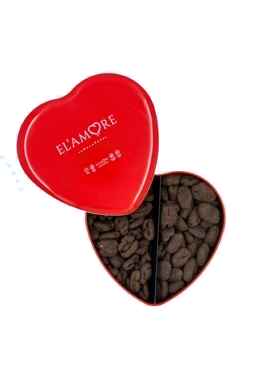 El'amore Şeker İlavesiz, Glütensiz, Vegan Mix Bitter Çikolata - Büyük Kalp Metal Kutu, 400 gr