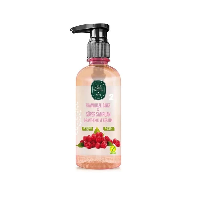 Eyüp Sabri Tuncer Frambuazlı Sirke & Süper Şampuan mükemmel formülü ve güçlü performansı sayesinde saçlarınızın etkili bir şekilde uzamasına, parlaklık kazanmasına ve dolgun görünmesine yardımcı olur.