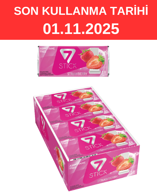 7 STICK Çilek Aromalı Şekersiz Sakız 31 gr X 12'li Paket 8681259500712