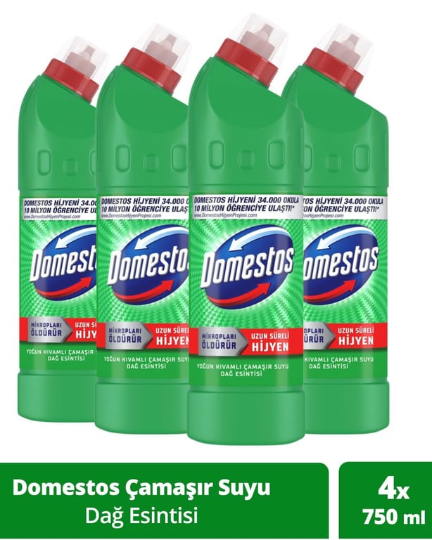 Domestos Yoğun Kıvamlı Çamaşır Suyu Dağ Esintisi 750 ml x 4'lü 8683130101209