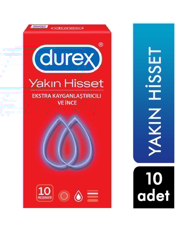 Durex Yakın Hisset Prezervatif ince yapısı ve kayganlaştırıcı krem içeriği ile daha fazla ve doğal his verir, dayanıklı yapısıyla hastalıklara ve gebeliğe karşı etkili koruma sağlar.