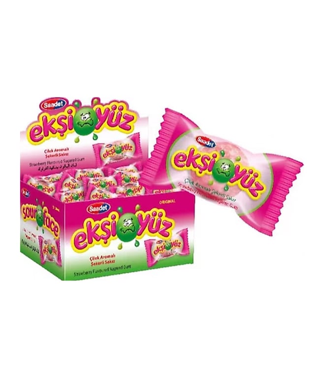 • Çocukların en sevdiği sakızlardan Ekşi Yüz Çilek Aromalı Şekerli Sakız, eğlenceli ve lezzetli tadıyla ToptanTR müşterilerine özel fiyatla kapınızda.