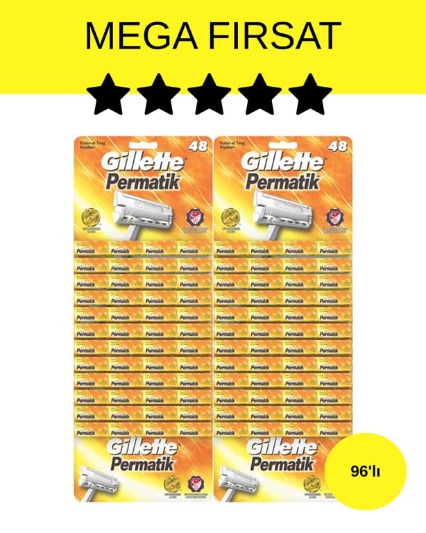 Bu ürün, Gillette permatik kartela 2x48'li seçeneğiyle de sunulmaktadır, bu sayede daha uzun süre dayanıklı ve uygun fiyatlı tıraş bıçaklarına sahip olabilirsiniz. Ayrıca, Gillette permatik kartela fiyatı da büyük alımlar için son derece cazip.