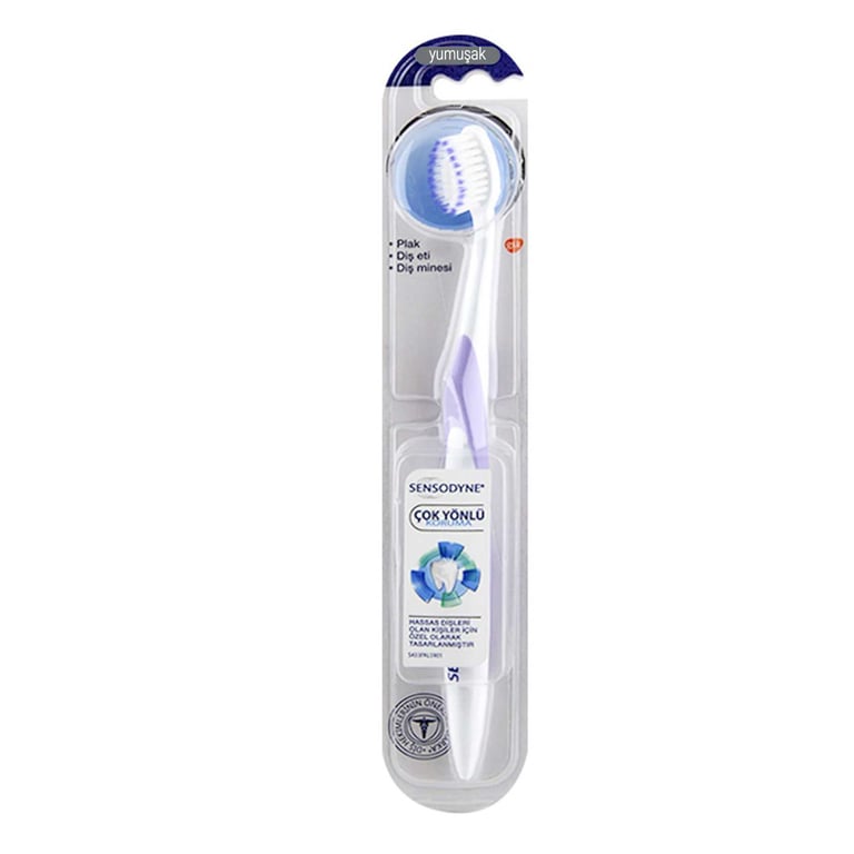 • Sensodyne çok yönlü koruma diş fırçası, pürüzsüz, yuvarlak kıl uçları diş etine zarar vermeyecek şekilde en üst teknolojiyle tasarlanmıştır.