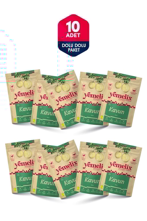YEMELİX Freeze Dried 10'lu Dolu Dolu Paket Kavun Kuru Meyve Cipsi - Dondurularak Kurutulmuş Kavun 15Gx10 8684802316327