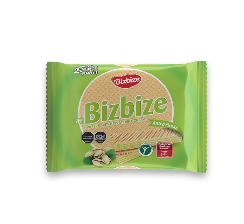 Bizbize Antep Fıstık Kremalı Çıtır Gofret 340GR 8691796100115