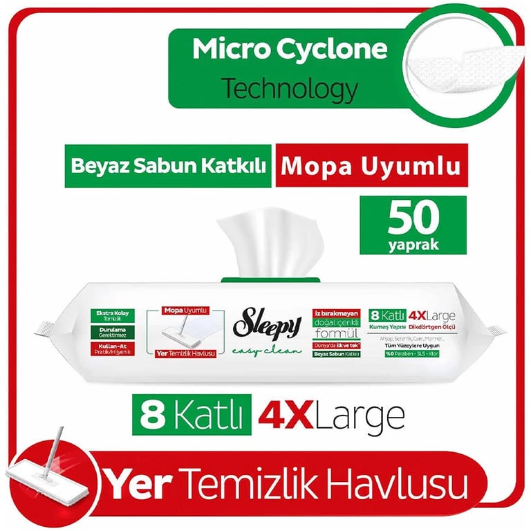 Sleepy Easy Clean Beyaz Sabun Katkılı Mopa Uyumlu Yer Temizlik Havlusu&Mendili 50'li 8682241215911