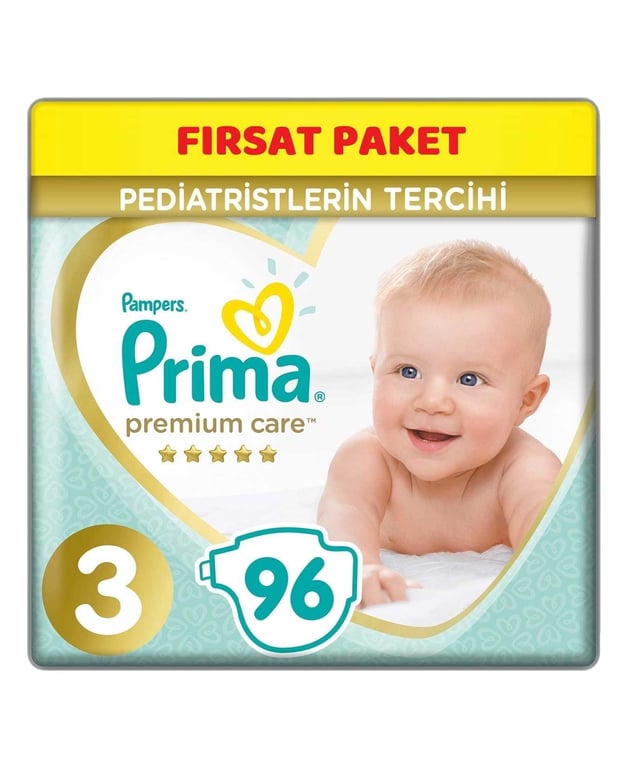 Prima Premium Care Bebek Bezi 3 Beden 96'lı Paket Ultra emici gücüyle sıvıyı hapseder