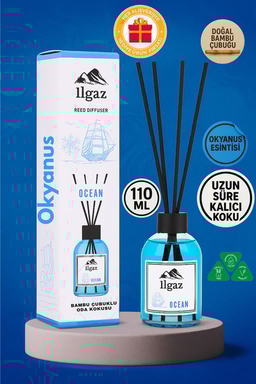 Ilgaz Okyanus Esintisi Bambu Çubuklu Oda Kokusu 110 ml | Red Diffuser Ocean Ortam Kokusu 86974472917681