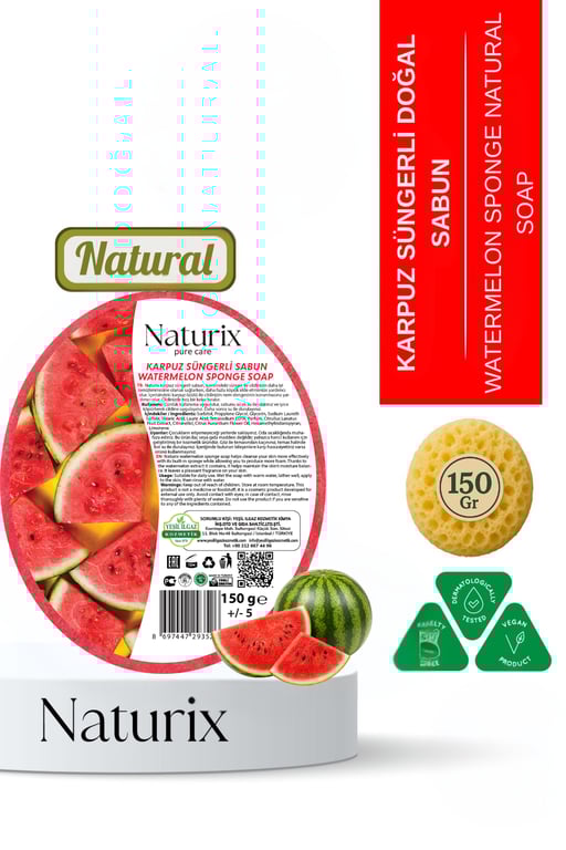 Naturix Karpuz Süngerli Sabun 150 Gr | Peeling Etkili Arındırıcı Sabun 8697447293526