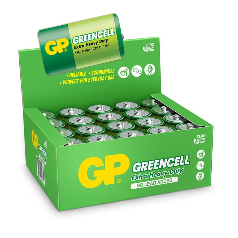 Gp Batteries Gp13g Greencell R20p/1250/d Boy Kalın Pil, 1.5 Volt, 20'li Kutu 4891199000881