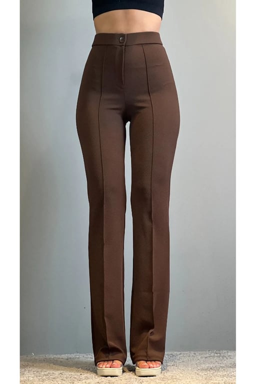 Thiff Krep Kumaş Likralı Önü Çimalı Kahverengi Kadın Palazzo Pantolon 202303057028