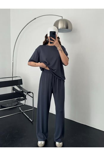 Thiff Antrasit Kadın Modal Kumaş Kısa Kolu Eşofman Takımı