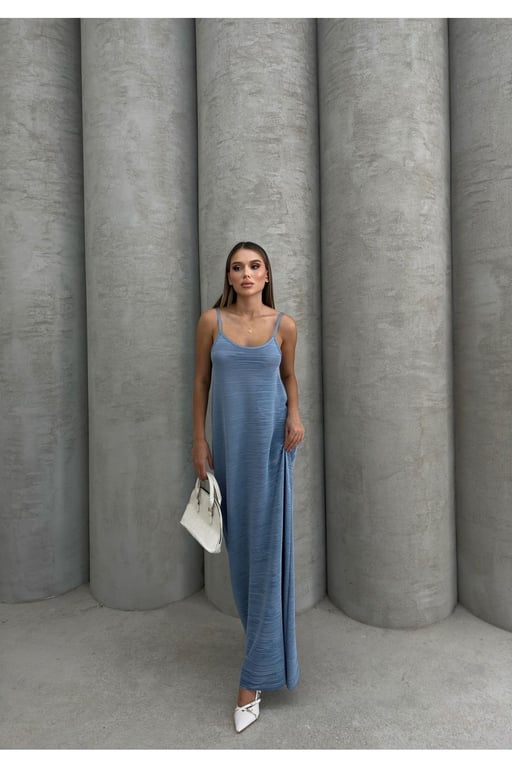 Thiff Mavi Kadın Askılı Piliseli Elbise 202303090032