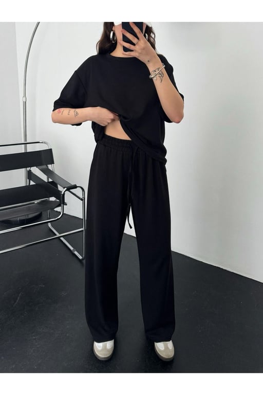Thiff Siyah Kadın Modal Kumaş Kısa Kolu Eşofman Takımı 202303061013