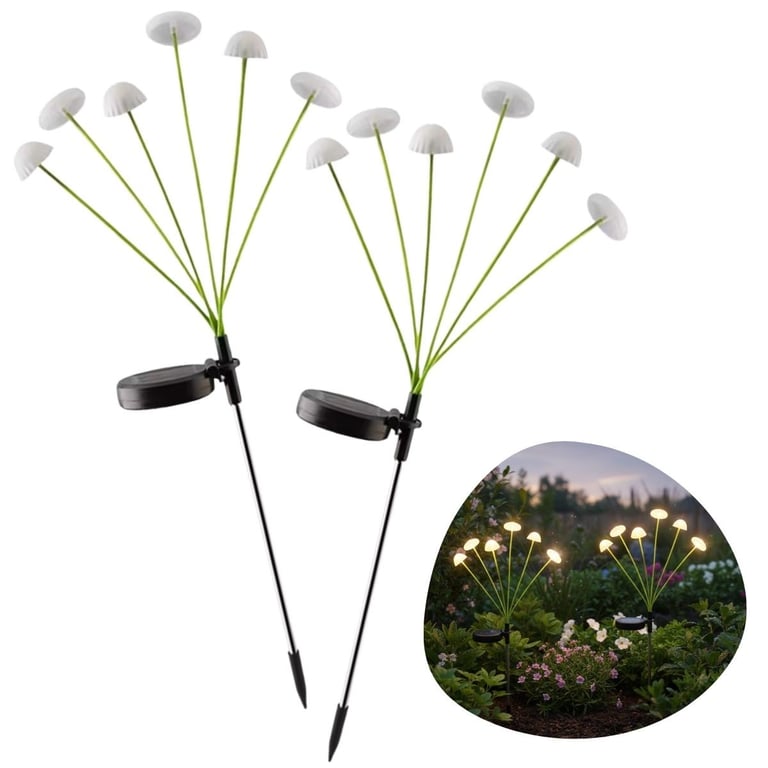 BUFFER® 2 Adet Plastik Mantar Solar Bahçe Lambası – Güneş Enerjili LED Dış Mekan Aydınlatma, Otomati