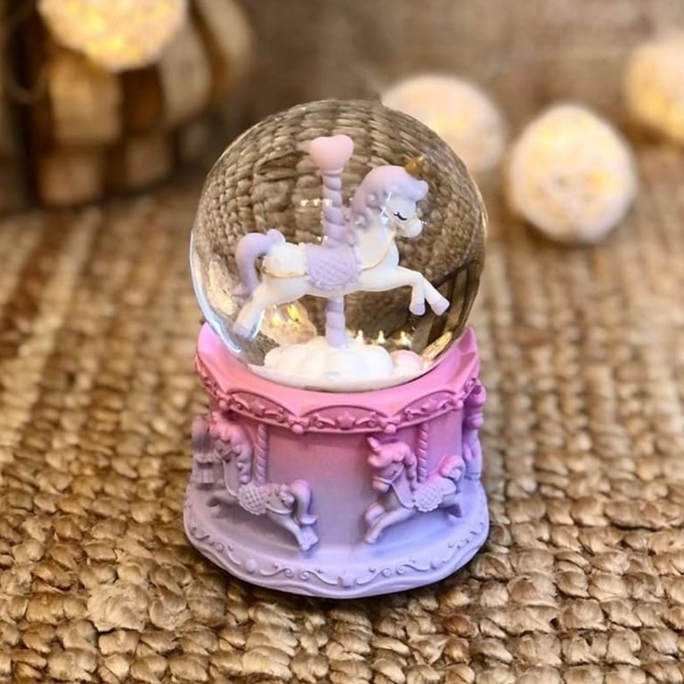 BUFFER® Pilli Işıklı Müzikli Kar Küresi–At Figürlü Eğlenceli Masaüstü Biblo, LED Aydınlatmalı Dekora