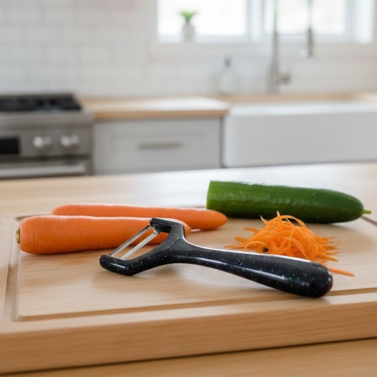 Küçük boy tasarımı hem kolay kavrama sunar hem de mutfak çekmecelerinde minimum yer kaplar. Ergonomik yapısı sayesinde uzun süre kullanımda bile elinizi yormaz. Dayanıklı paslanmaz çelik bıçak, uzun ömürlü kullanım sağlarken keskinliğini koruyarak her kullanımda pürüzsüz soyma performansı sunar.