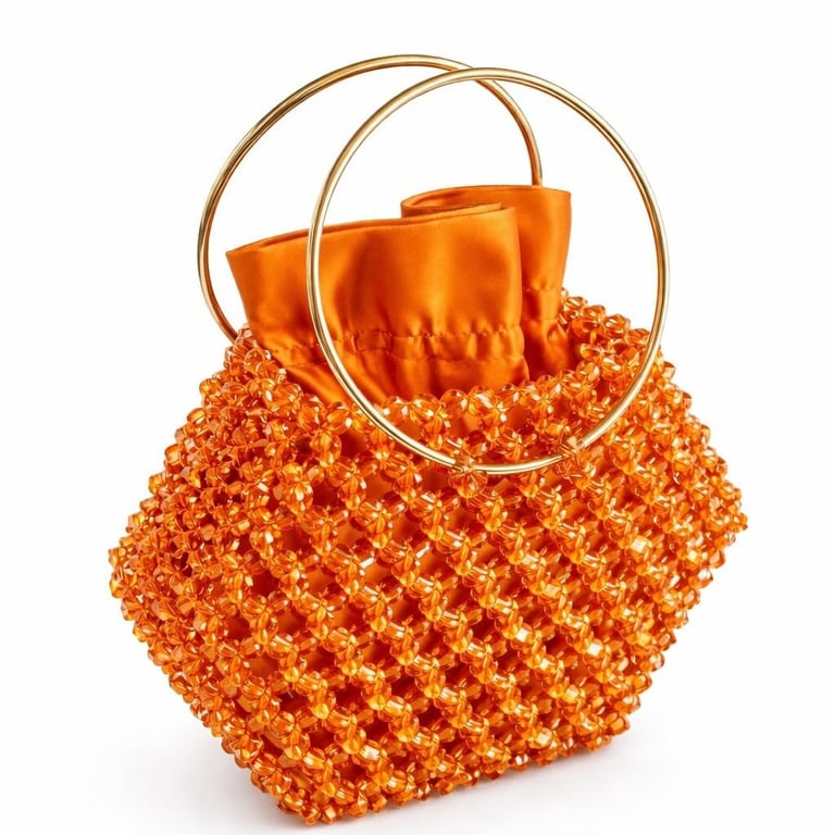 Kristal boncuklar, yüksek dayanımlı misina ile tek tek örülerek çok katmanlı bir yüzey yapısı oluşturur. Bu yapı, çantanın form bütünlüğünü korurken kristal örgünün üç boyutlu etkisini güçlendirir ve yapısal stabilite sağlar.