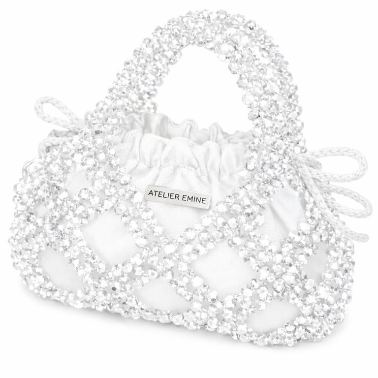 Budino Lattimo, Atelier Emine’in Crystal Gelato Couture koleksiyonunda yer alan; tek parça couture yaklaşımıyla ele alınmış, tekstil ve kristal işçiliğinin heykelsi bir birliktelik sunduğu top-handle pouch bag tasarımıdır.