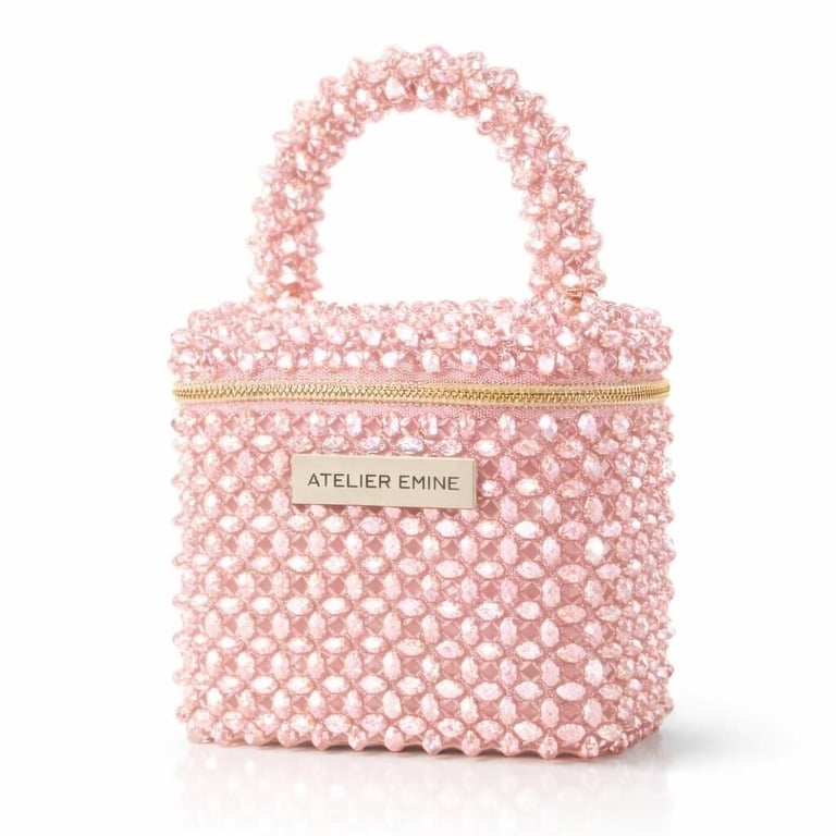Atelier Emine’in Crystal Gelato Couture serisine ait bu tasarım; 8 mm optik sınıfı kristal boncuklar kullanılarak, tamamen el işçiliğiyle üretilmiş box formda premium mini çanta modelidir.