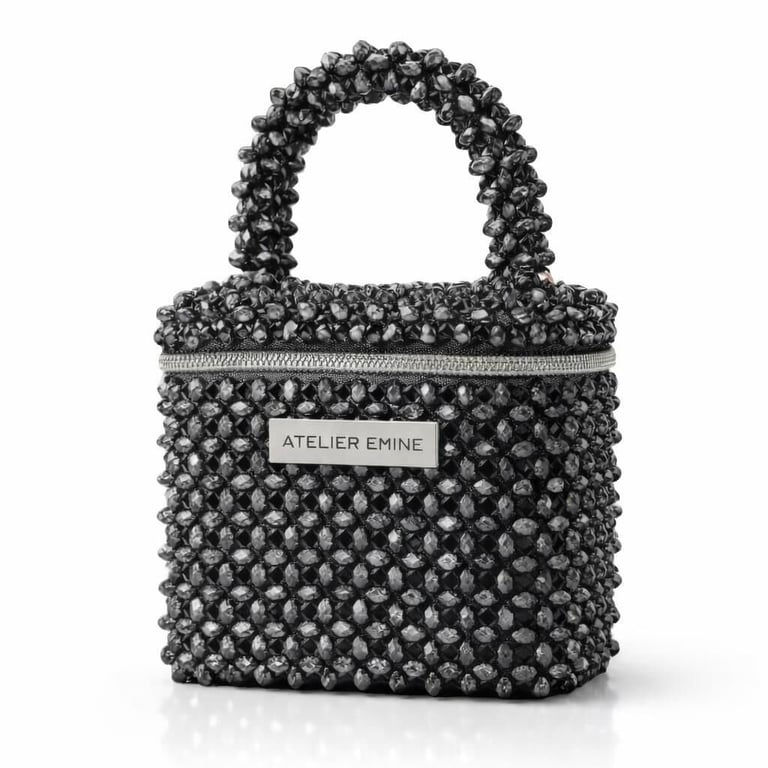Atelier Emine’in Crystal Gelato Couture serisine ait bu tasarım; 8 mm optik sınıfı kristal boncuklar kullanılarak, tamamen el işçiliğiyle üretilmiş box formda premium mini çanta modelidir.