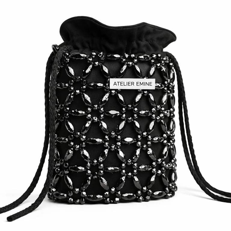 Premium El Yapımı Kristal Drawstring Mini Bag