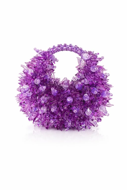Stracci Lilacée, klasik çanta yüzeyi anlayışını tamamen reddeden; kristali bir süsleme unsuru olarak değil, doğrudan strüktürel ve heykelsi bir kütle olarak ele alan deneysel bir Crystal Gelato Couture tasarımıdır.