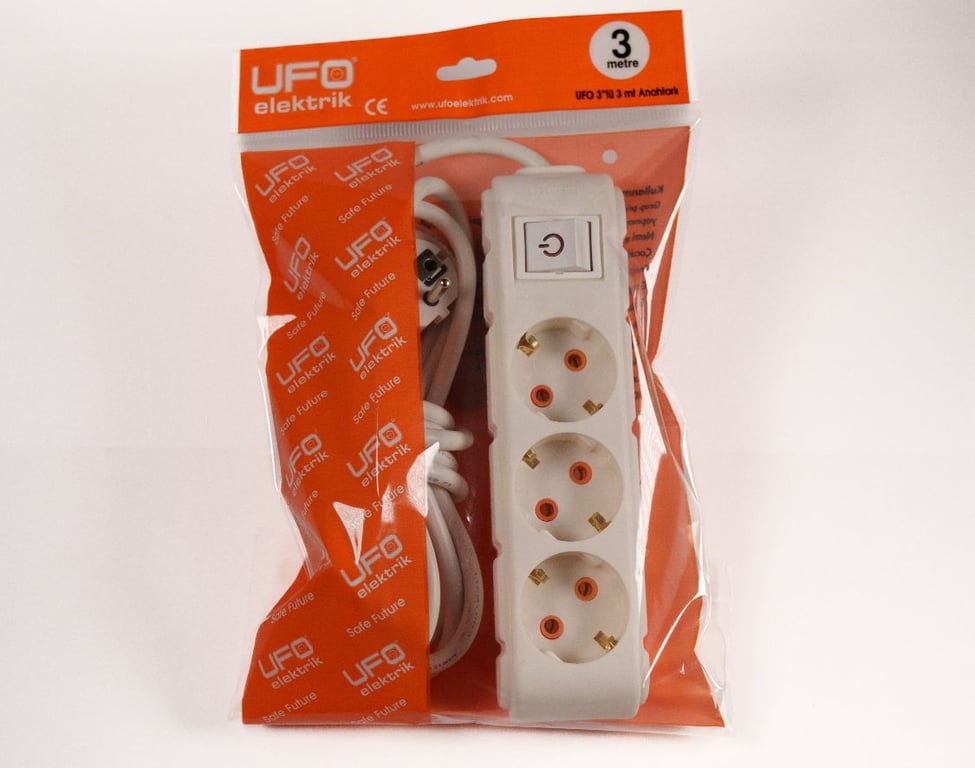 Ufo 3'lü 3 Metre Anahtarlı Grup Priz Beyaz
