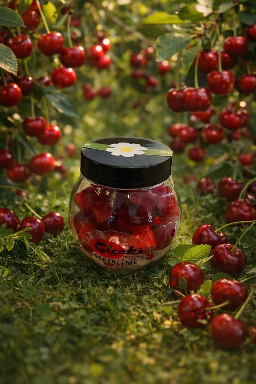 Doğal vişne öznünden imalat akide şekeri. 100 gramlık hava sızdırmaz pet ambalajlarda.