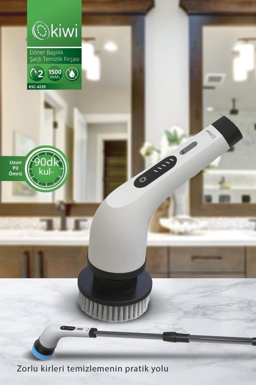 Kiwi Ksc-4229 Şarjlı Döner Başlıklı Temizlik Fırçası 7 Başlıklı Uzatma Çubuklu Temizlik Makinesi 8681438114426