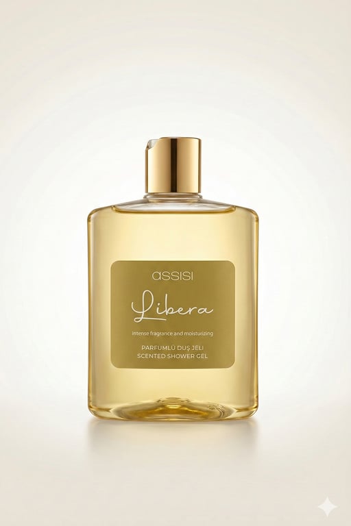 "Assisi" markasının "Libera" parfümlü duş jeli, sofistike bir banyo deneyimi sunuyor. Sade ama şık dikdörtgen cam şişesi ve altın rengi etiketi, ürünün lüks yapısını vurguluyor. Bu şeffaf, sarımsı jel, banyolarınıza zarif bir dokunuş katarken benzersiz bir arındırma sunuyor.