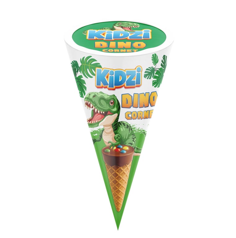 Kidzi Dinazor Sütlü Kornet Çikolata 20 g, dinazor temalı eğlenceli tasarımı ve lezzetli sütlü çikolatasıyla çocuklara özel olarak üretilmiştir. Kornet formu sayesinde hem görsel olarak dikkat çeker hem de keyifli bir tüketim sunar.
